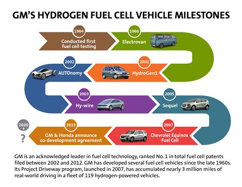 通用汽車和本田汽車在燃料電池領域都有技術上的獨到之處,根據潔凈能源專利增長指數(Clean Energy Patent Growth Index)統計,2002年至2012年間,通用和本田在燃料電池領域總計獲得1,200項專利。