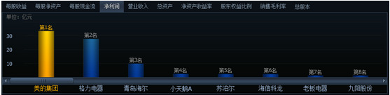 青島海爾2014年實現收入887.8億元,同比增長2.5%;歸屬于母公司股東的凈利潤49.9億元,同比增長19.6%;而美的集團2014年則實現營業總收入1423億元,同比增長17%,實現歸屬于母公司凈利潤105億元,同比增長44%;格力電器表現也很出色,2014年營業總收入1400.05億元,較上年同期增長16.63%,凈利潤141.55億元,較上年同期增長30.22%。