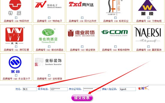 投票時需要輸入投票人姓名,身份證號碼,聯系電話,并點擊選中的品牌編號(003-深圳市倍斯特電源有限公司)對應的投票欄;A類。