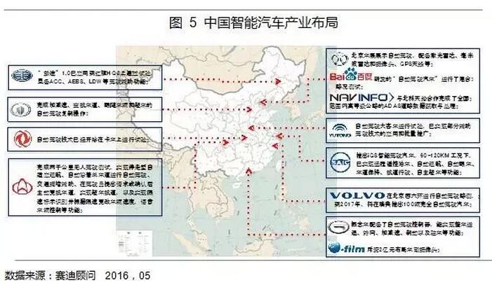 國內(nèi)智能汽車相關(guān)企業(yè)主要布局在東部沿海城市。國內(nèi)整車廠商也紛紛進(jìn)行自動駕駛技術(shù)的研發(fā)、測試及應(yīng)用,一汽、長安、北汽、長城等廠商研發(fā)的智能汽車均通過了試驗(yàn),部分整車廠已將部分輔助駕駛功能應(yīng)用到產(chǎn)品上;同時,四維圖新、百度等電子供應(yīng)商及IT企業(yè)加大投資及研發(fā)力度,加快智能汽車的產(chǎn)業(yè)化進(jìn)程。從產(chǎn)業(yè)分布情況來看,目前國內(nèi)智能汽車產(chǎn)業(yè)相關(guān)企業(yè),主要依托當(dāng)?shù)匾延衅嚠a(chǎn)業(yè)基礎(chǔ),集中分布在東北沿海城市。