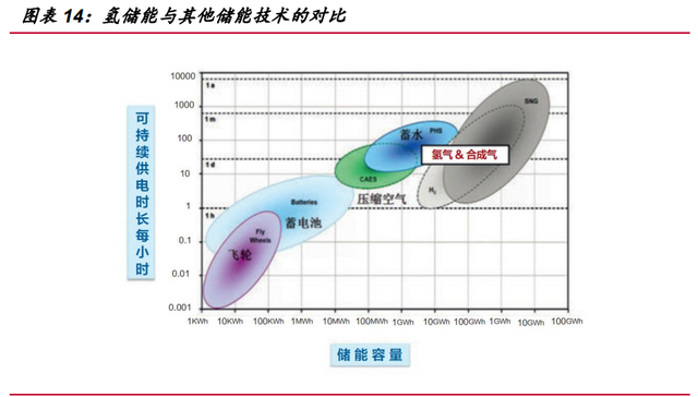 2)與儲電的互補性:相比動力電池的高頻調節,氫儲能屬于低頻調節,兩者互 補性強;