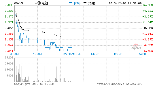 截至11:50,中聚電池跌5.48%報(bào)0.345港元,成交約1800萬(wàn)港元。