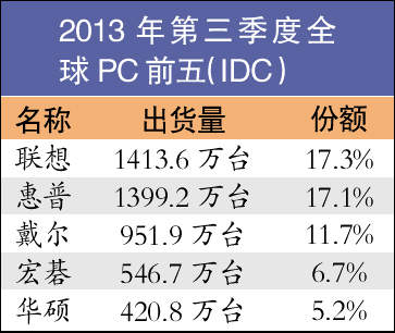 IDC此前發布的數據顯示,2013年第三季度全球PC出貨達8030萬臺,同比下降8.6%,出貨量連續第六個季度下滑。