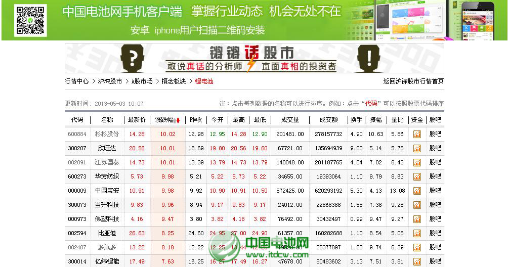 【本網訊受消息面刺激,今天鋰電板塊放量上攻,截止到上午10:10,欣旺達、江蘇國泰、華芳紡織、當升科技、佛塑科技、多氟多等股票漲停,新宙邦、凱恩股份、西藏城投、比亞迪、天齊鋰業、贛鋒鋰業漲幅超過8%。中國電池網-中國電池雜志分析師認為,主要是因為昨日財政部、工信部四部委已達成共識,上半年將出臺新能源汽車補貼政策。據中國汽車工業協會相關負責人透露,相關部委正在積極研究,補貼政策應該很快出臺。受此利好刺激,二級市場普遍認為,新能源汽車的動力電池及材料將因此受益。