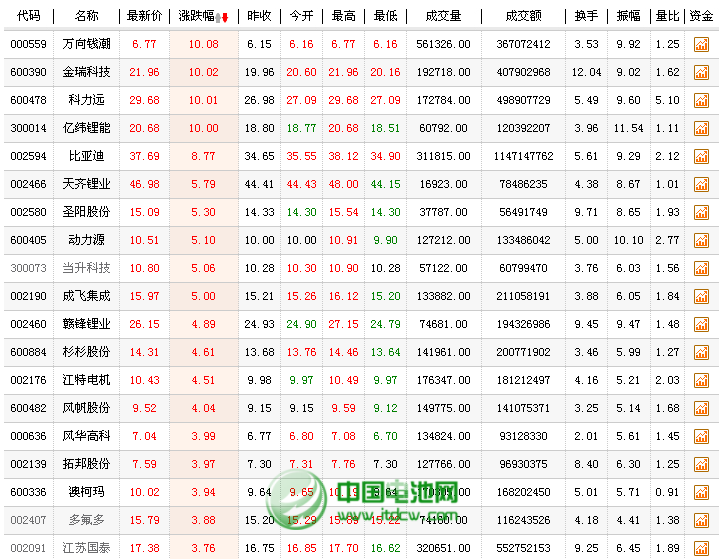 來自大洋彼岸的“特斯拉效應”,引發A股新能源汽車和鋰電池相關概念股全線啟動。鋰電池概念股今日大漲逾1%,萬向錢潮、金瑞科技、比亞迪、億緯鋰能4股漲停,科力遠等漲幅居前。 據證券