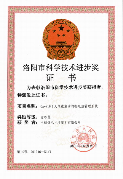 近日,中航鋰電四項(xiàng)科技成果成功獲得洛陽市科學(xué)技術(shù)進(jìn)步獎(jiǎng),其中,“CA-V10Ⅰ大電流主動(dòng)均衡電池管理系統(tǒng) ” 和“ 高可靠性CA60FⅠ鋰離子動(dòng)力電池 ” 兩項(xiàng)科技成果獲得洛陽市科學(xué)技術(shù)進(jìn)步一等獎(jiǎng), “智能化通信用鋰離子后備電源系統(tǒng) ”和“ 電動(dòng)乘用車車載電力綜合管理系統(tǒng) ”兩項(xiàng)科技成果獲得洛陽市科學(xué)技術(shù)進(jìn)步二等獎(jiǎng),標(biāo)志著中航鋰電在高性能電池、電池管理系統(tǒng)及電源系統(tǒng)等方面的研發(fā)取得重大突破,研究成果得到業(yè)內(nèi)專家的認(rèn)可,為中航鋰電產(chǎn)品的系列化發(fā)展和進(jìn)一步拓展市場(chǎng)奠定了良好的基礎(chǔ)。