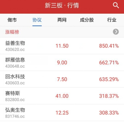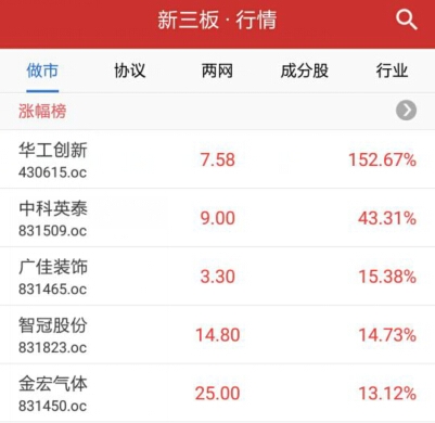做市轉(zhuǎn)讓漲幅前五