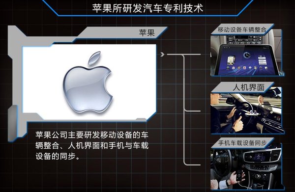目前正處于“大紅大紫”的蘋果公司也早已開始進軍汽車領域,并提出了i-car的造型理念。該車以玻璃材質為主體,風擋玻璃從車頭一直貫穿到車尾。最為重要的是其并沒有采用傳統的操作方式,而是通過Home管理系統,實現駕駛。除整車外,蘋果還在研發移動設備和車輛的整合、人機交互界面以及手機車載設備同步等技術。