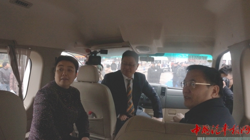 杭州副市長范輝(左)、陳峰(中)、朱福壽(右)在御風電動車上