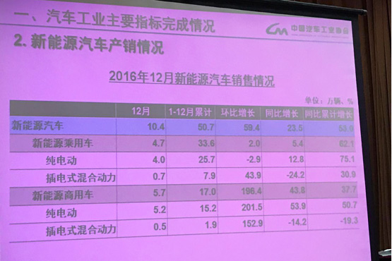 陳士華分析,2016年新能源汽車的產銷規律和去年相似,最后的11月、12月達到全年新高,其中12月新能源汽車銷售高達10.4萬輛。