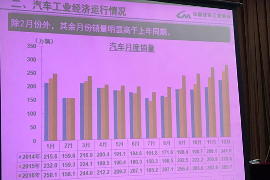 12月,我國汽車產銷分別為306.28萬輛和305.73萬輛,產銷雙雙超過300萬輛,同比分別增長15.04%和9.47%。在11月高基數的情況下依然保持高增長確實不易?;仡櫧衲旮鱾€月份的增長情況,鳳凰汽車發現累計增長速度呈現逐步提高的態勢,陳士華總結:“2016年汽車工業表現強勢?!?/p>