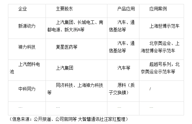 據(jù)大智慧通訊社簡單統(tǒng)計發(fā)現(xiàn),目前已有多家上市公司涉足燃料電池及相關(guān)領(lǐng)域,主要有上汽集團(tuán)、南都電源(300068.SZ)等。
