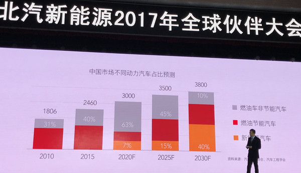 鑒于這樣大好的市場前景,鄭剛還為未來汽車市場做了一個占比推測??梢钥闯?,到2030年,新能源汽車市場占比將超過燃油車非節能汽車。