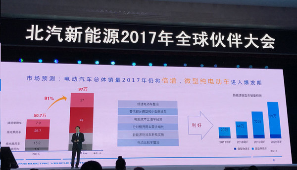 他還表示,2017年,電動汽車總體銷量將持續上升,出現倍增趨勢,而微型純電動車也將進入爆發期。此外,分時租賃和專車出行也將出現較大的發展。