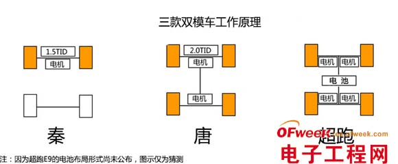 所以比亞迪規(guī)劃了更高級(jí)的混合動(dòng)力——唐。唐類似于保時(shí)捷918的混合動(dòng)力方式,在秦的基礎(chǔ)上,后輪加了一個(gè)電機(jī),組成前后混合動(dòng)力模式。這樣起步可以四輪驅(qū)動(dòng),不是5.9秒,而是4.9秒、3.9秒,起步可以秒殺超跑的。