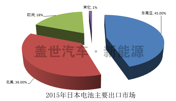 2015年,日本進(jìn)口的電池主要由東南亞、北美、歐洲的國家和地區(qū)生產(chǎn)。