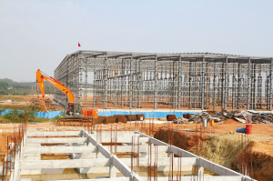 作為省、市、區(qū)三級(jí)的重點(diǎn)項(xiàng)目,陸地方舟新能源汽車首期項(xiàng)目的投資額約10.3億元,建筑面積達(dá)26萬(wàn)平方米。項(xiàng)目自動(dòng)工建設(shè)以來(lái),就備受關(guān)注。歷經(jīng)多方的努力,目前廠房的建設(shè)初有成效,其中電驅(qū)動(dòng)大樓基本完成建設(shè),沖壓及焊裝車間完成主體結(jié)構(gòu)的建設(shè),涂裝車間正進(jìn)行樁基礎(chǔ)建設(shè)。