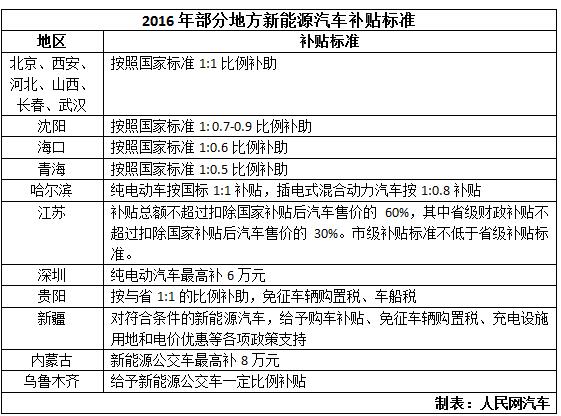 近日,2016年新能源汽車(chē)地方補(bǔ)貼標(biāo)準(zhǔn)陸續(xù)出爐。截至3月,已有北京、深圳、河北等16個(gè)省市明確了補(bǔ)貼標(biāo)準(zhǔn)。相比2015年的補(bǔ)貼標(biāo)準(zhǔn),部分地區(qū)如江蘇、海口、青海、沈陽(yáng)等地略有收緊。在地方補(bǔ)貼政策懸而未定的地區(qū),呈現(xiàn)出多種銷(xiāo)售模式并存的狀態(tài)。