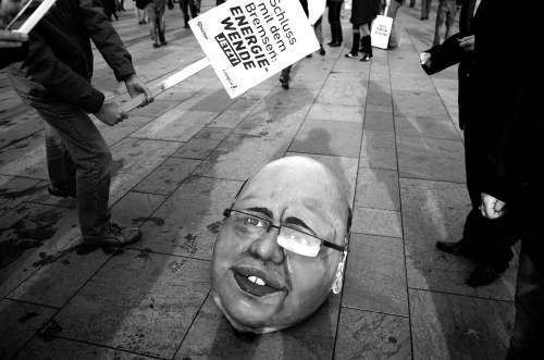 2012年11月2日,德國總理府舉行能源會議,示威者則在場外抗議。