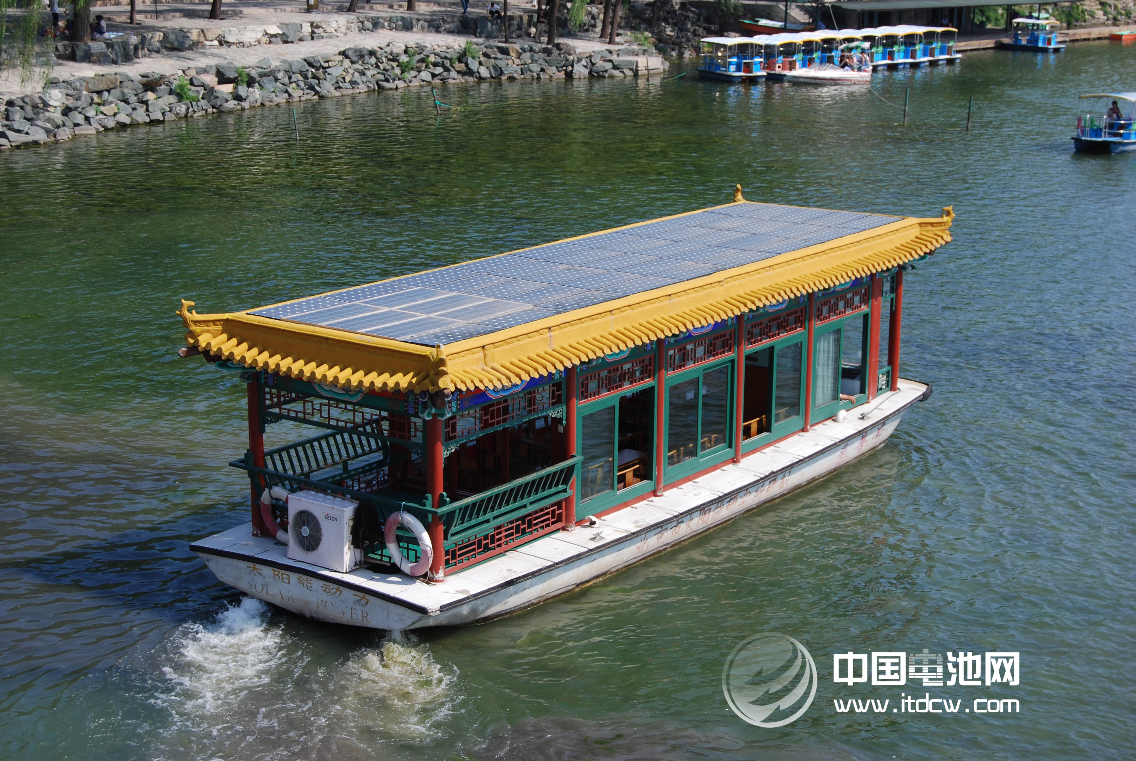 北京頤和園一種以太陽(yáng)能電池作為動(dòng)力的游船亮相,既經(jīng)濟(jì)又環(huán)保。 攝影:于清教