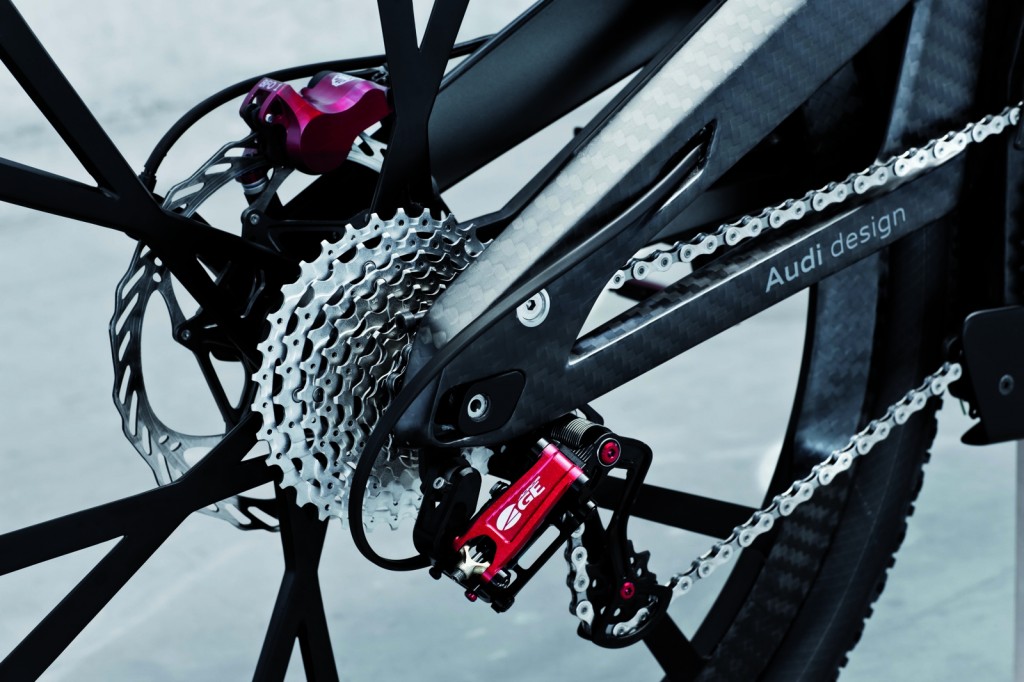 據國外媒體報道,奧迪公司打造了一款電動概念自行車,名為“Wrthersee”,時速可達到50英里(約合每小時80公里)。這款電動自行車遵循賽車的設計原則,擁有自行車迷能夠想到的一切功能,堪稱自行車家族的F1。