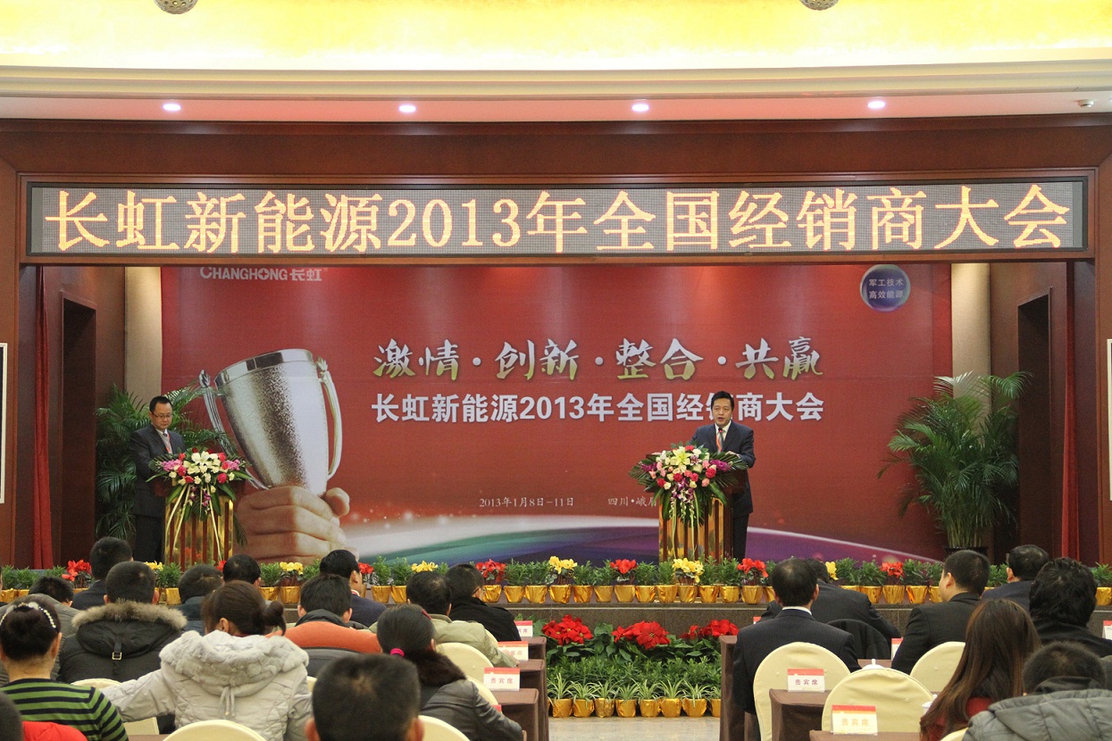 近日,由四川長(zhǎng)虹新能源科技有限公司主辦,來(lái)自全國(guó)各地80余位營(yíng)銷精英參與的“激情 創(chuàng)新 整合 共贏——長(zhǎng)虹新能源2013年全國(guó)經(jīng)銷商大會(huì)”隆重舉行。 會(huì)上,長(zhǎng)虹新能源公司總經(jīng)理郭龍就