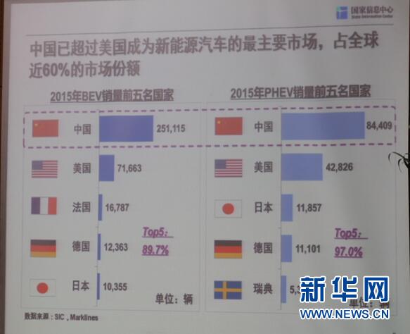 2015年全球新能源汽車銷售56.4萬輛,以純電動汽車為主,同比增長了102%。其中,中國的貢獻率最為明顯,已經超越美國成為新能源汽車最主要市場,占全球近60%的市場份額(純電動和插電混動均位于第一位)。與中國在2015年迅猛發展相比,美國電動汽車銷售量去年同比減少3.6%。