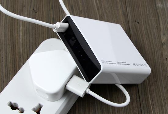 由于這款移動電源的輸入為5V 1A,我們先使用蘋果充電器為它充電。在此過程中,白色LED指示燈開始逐個閃爍,為8400mAh的鋰離子電池充滿電所需時間在10小時左右,也就是睡一覺即可充滿。如果用戶換用電腦的USB接口充電的話,由于這些接口一般只能提供5V 500mA的輸出,充電時間還會延長不少。在充電過程中,移動電源發熱并不明顯。