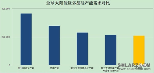 圖1: 2013年全球太陽能級多晶硅供需對比(數(shù)據(jù)來源: IHS Solar光伏供應(yīng)鏈報告)