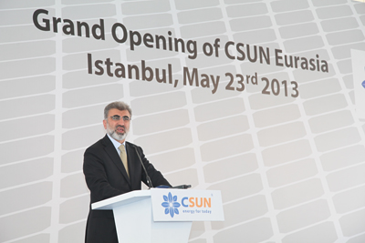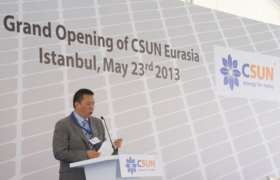 013年5月23日,CSUN位于伊斯坦布爾的土耳其工廠舉行了隆重的投產(chǎn)儀式。CSUN董事長陸廷秀先生及當(dāng)?shù)睾献骰锇镾EUL能源董事長Cargi Seymen出席儀式并致辭。此次投產(chǎn)儀式還特別邀請土耳其能源部部長