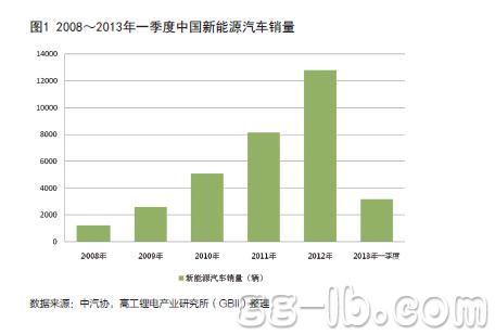 事實上自從2008年以來,新能源汽車的銷售量一直維持在50%以上的高速增長,從2008年的1217輛起步,在國家政策推動下,逐年大幅增加,2012年已經銷售超過12791輛(圖1),4年增長10倍,在基數增大的同時,今年一季度的銷售依舊維持在57%以上的增長,從這個角度來看,新能源汽車行業持續高增長不言而喻。