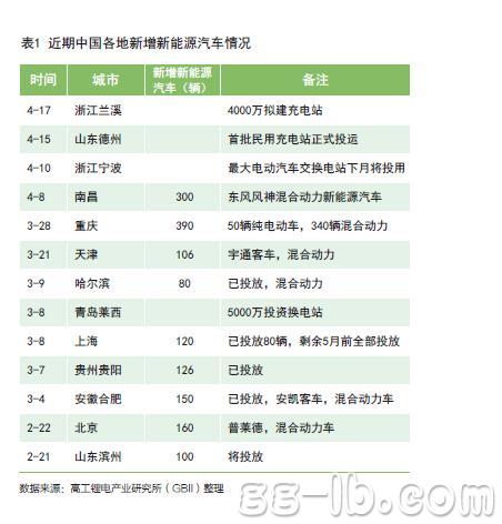 一季度中國新能源汽車產銷兩旺,并非是來自于新能源汽車的價格等因素的變化,主要的力量還是來自于中國政策的推動,特別是各地在執行上的加大力度,跟據高工鋰電產業研究所(GBII)最近的調研,近期中國各地都集中出現了新增新能源汽車投運的情況,集中表現在公交領域,值得一提的是,之前表現相對平平的地方都有了新的突破,哈爾濱,濱州等(表1)。