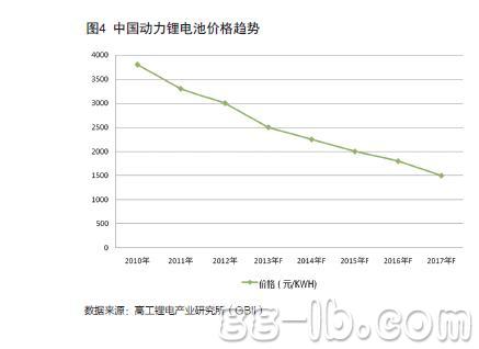 電動汽車的發展,電動車的價格最主要,華南鋰電論壇的專家就認為不超過一般汽車300美金的話就比較容易發展起來。客觀來說,只要消費者覺得新能源汽車價錢和傳統汽車差不遠,技術過硬安全有保證,駕駛起來充電換電也方便,再加上國家給了那么多優惠政策,買這么一輛車,在獲利的同時,又為聲勢浩大的節能減排運動貢獻一份微薄之力,可謂一箭多雕,何樂而不為。而要做到這一點,在其他硬件成本幾乎相差不大的情況下,大幅降低電池成本成為唯一的途徑,根據高工鋰電產業研究所(GBII)調研,當鋰電池成本降低到200-250美元/千瓦時的時候,電動車的價格和傳統汽車的價格就相差無幾了。即到2017年的時候,動力鋰電池的價格或將下降到1500元/千瓦時(圖4),屆時或將迎來新能源汽車爆發式增長。