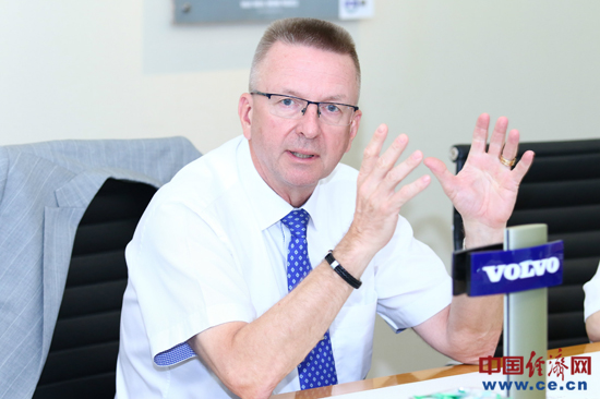 圖為沃爾沃集團中國區總裁克勞斯先生接受媒體采訪。中國經濟網記者 金艷/攝
