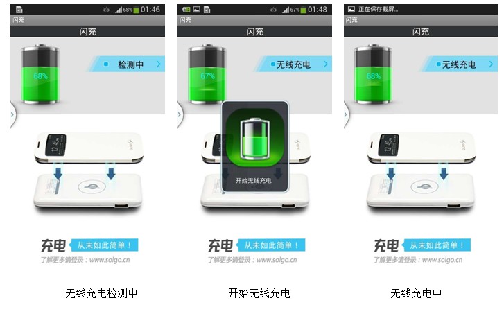 一塊看似普通的電池加“閃充“客戶端,就可讓三星S4從此告別數(shù)據(jù)線的煩惱。放上即充,拿開又可電話、游戲,工作娛樂兩不誤,簡直羨煞旁人。無線充電再也不僅僅是nokia的專利,讓我們解放S4,讓他更加完美!當(dāng)然這一切無線充電功能的實(shí)現(xiàn),“閃充”功不可沒。松果數(shù)碼強(qiáng)悍軟件”閃充”的部分功能,讓我們先一睹為快。