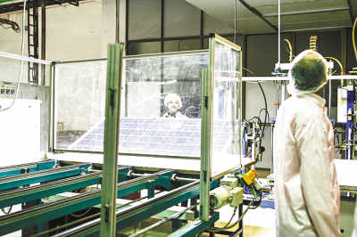 圖為Tata Power Solar Systems位于印度班加羅爾的一處太陽能電池板加工廠。