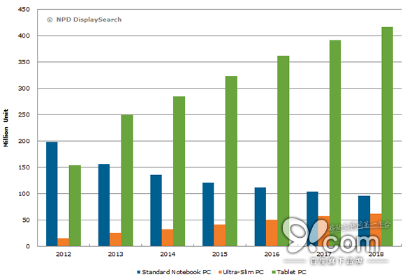 來自市場研究機構NPD DisplaySearch(以下簡稱“NPD”)公布的最新數據顯示,金年第一季度,全球平板電腦出貨量首次出現了下滑。與此同時,該研究機構也下調了整個2014年全球平板電腦出貨量預期。