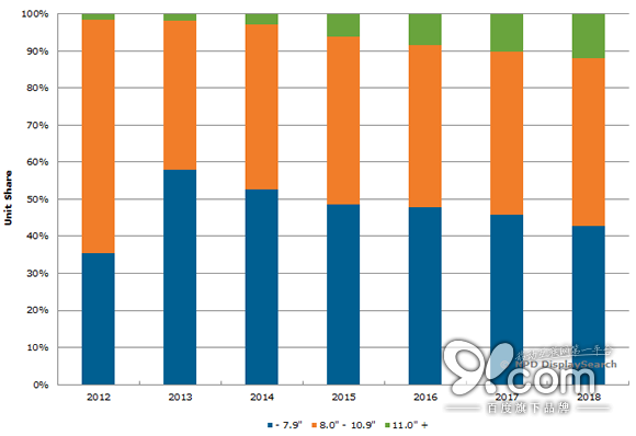 NPD的數據顯示,全球平板電腦出貨量今年第一季度首次下滑,部分原因是市場對小尺寸平板電腦(7英寸到7.9英寸之間)需求量的下降。去年這種小尺寸的平板電腦出貨量約占全球整個平板電腦出貨量的58%。NPD方面稱,在中國和其他新興市場上,來自大顯示屏智能手機(顯示屏超過5.5英寸)的競爭威脅對這些小顯示屏平板電腦的市場需求產生了損害。