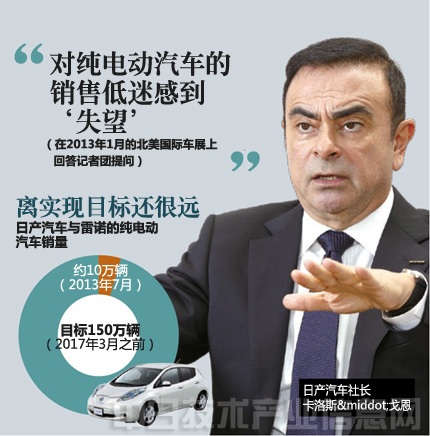 不過,截至2013年7月,兩公司的總銷量只有約10萬輛。在2013年1月的北美國際車展上,對于記者提出的純電動汽車的銷量問題,日產社長卡洛斯·戈恩回答說“很失望”。從2013年4月開始,LEAF(聆風)各車型的售價全部下調28萬日元,不過銷售仍然沒有回暖的跡象。最近,日產通過與戴姆勒等合作,強化了燃料電池車的開發(fā)。