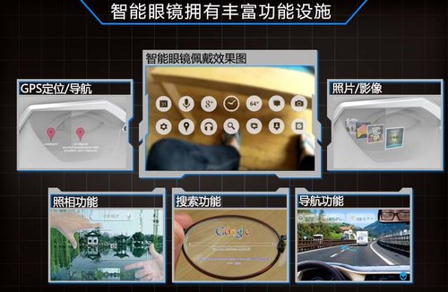 谷歌所開發的智能眼鏡是基于Android操作系統運行的,理論上其不僅可以用語音操作、還 能采用視覺感應控制。在眼鏡上會存在一個與佩戴者的視線同步的光標,并且可以與視線產生互動。這款眼鏡集智能手機、GPS、相機于一身,具有收發短信、查 詢天氣路況等功能,與此同時在用戶獲取實時信息的同時,通過眨眼與視覺操作便可完成拍照、甚至上傳一系列的操作。