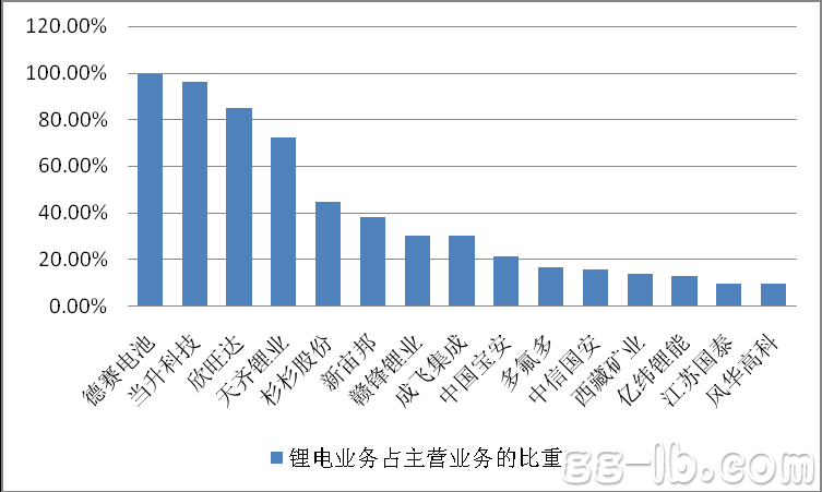 圖2 鋰電營業收入占主營業務的比重前十五家