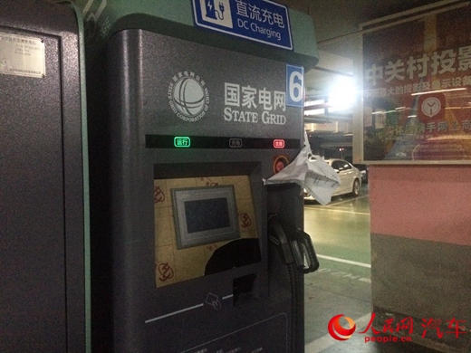 在朝陽區金港汽車城的北京全福源4S店院內,2個快充、3個慢充共5個充電樁全部是壞的,店內工作人員告訴記者,已經壞了一段時間了,通知了廠家來維修,但一直還沒修好。