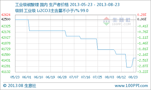 據生意社大宗榜監測數據顯示,本周工業級碳酸鋰出廠均價41500元/噸,價格小漲0.59%。近期國內市場碳酸鋰的價格幾乎全部持續走穩。