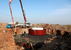 “風機還沒有吊起來,我們正在做風機基礎施工?!辈砒欙w將記者引到一個20米直徑的大坑前,4米高的混凝土承臺從土地上露出來,一名工人正綁扎大腿粗的風機基礎鋼筋,“這里做完澆筑后,馬上要做吊裝平臺,承重630噸的吊車將在這個地方把風機吊起來?!辈砒欙w告訴記者。
