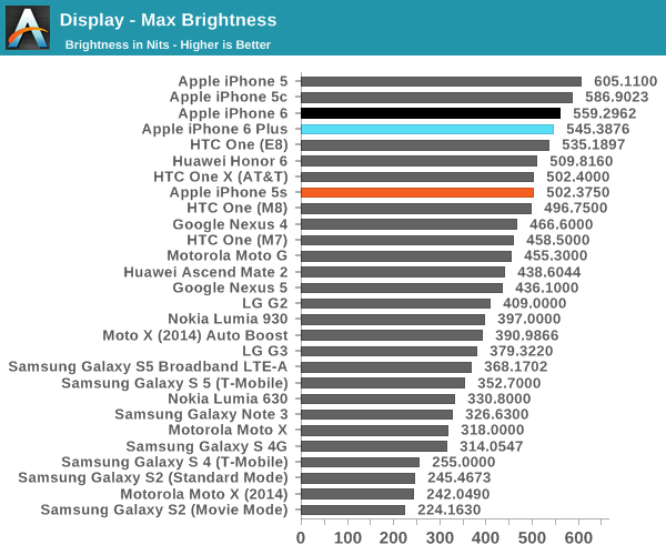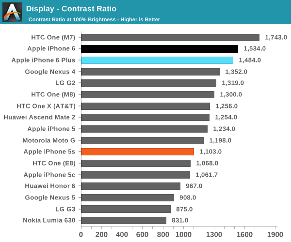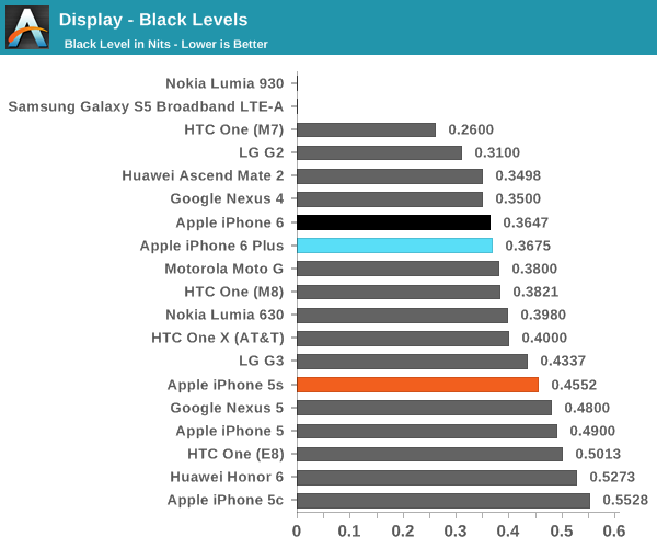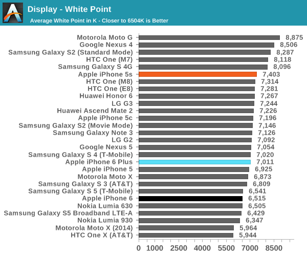 對(duì)于追求屏幕專業(yè)測(cè)試的鋒友,在這里借用著名評(píng)測(cè)工作室 Anandtech 的數(shù)據(jù)圖表以供參考:
