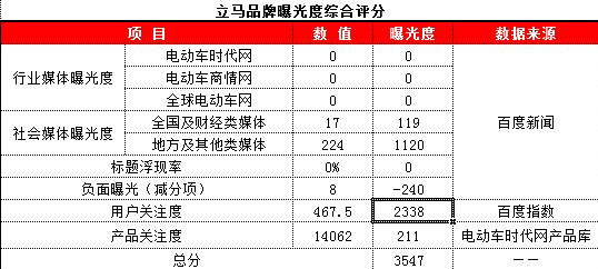 市場表現(xiàn)一直略顯低調的立馬,在第三季度起始階段進入榜單前八名,不難看出,其在網(wǎng)絡平臺的主動宣傳方面還稍顯不足,媒體曝光度方面也表現(xiàn)平平,不論品牌還是產(chǎn)品,都沒有在網(wǎng)絡媒介上過多表現(xiàn),還因出現(xiàn)一些負面信息而對口碑排名產(chǎn)生一定影響。