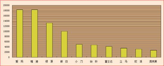 由電動車時代網(wǎng)發(fā)布的《電動自行車行業(yè)品牌網(wǎng)絡營銷口碑指數(shù)榜》2013年第三季度數(shù)據(jù)出爐。從本季度榜單排名來看,一線品牌的關注度整體表現(xiàn)突出,這在很大程度上也是得益于假期經(jīng)濟和頻繁的市場營銷活動。本期榜單愛瑪持續(xù)占據(jù)榜首的位置,雅迪暫居第二,綠源再度躋身前三,其余進入前十的品牌依次是新日、小刀、臺鈴、富士達、立馬、歐派和英克萊。此外,值得一提的是賽克,其綜合實力較往期進步也非常明顯,從統(tǒng)計來看,其未來進入十強行列的希望也非常大。