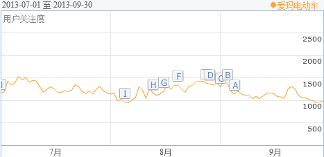從數(shù)據(jù)可以看出,第三季度愛瑪在各個項目中均表現(xiàn)出色。首先在媒體曝光度上,網(wǎng)絡相關新聞傳播總量超過1000條,拉大了與第二陣營中企業(yè)的差距。具體來看,7月中,由其代言人周杰倫導演兼主演的電影《天臺愛情》熱播,更是讓愛瑪?shù)挠脩絷P注度迅速飆升。8月份,由愛瑪電動車獨家冠名播出的大型明星互動模仿秀《天下無雙》第一季正式收官,但持續(xù)不斷的線下活動也為愛瑪制造了無數(shù)的話題。9月,愛瑪推出最新力作路可兒(ilook),成功掀起電動美學新概念革命,極具未來感和科技感的新品更與iPhone5s同臺角力,從而收獲了大批的人氣。