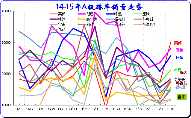8月的A級車主力車型銷量走勢總體回升較大,日系的產品調整推動車型差異化,歐美系的車型調整力度較大。8月的日系表現超強,卡羅拉和軒逸的產品優勢明顯,加之強力的增量意愿,雖然批發受阻,但日系A級車零售成為近期的亮點。朗逸等德系強勢車型受到日系轎車和自主SUV的沖擊而走勢稍弱,而韓系等調整力度較大。近期的歐美系轎車的價格調整也是有效改善危機的辦法,英朗本月強力沖刺,零售效果也不錯。