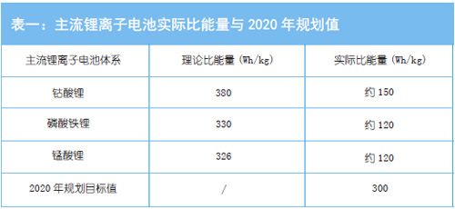 根據(jù)國務院頒布的《節(jié)能與新能源汽車產業(yè)發(fā)展規(guī)劃(2012-2020 年)》中提及的目標,至2015年動力電池模塊的能量密度達到150Wh/kg(折算成單體電池,其能量密度大約需要達到170-190Wh/kg),至2020 年動力電池模塊的能量密度達到300Wh/kg(對應的單體電池能量密度至少達到330Wh/kg 以上)。